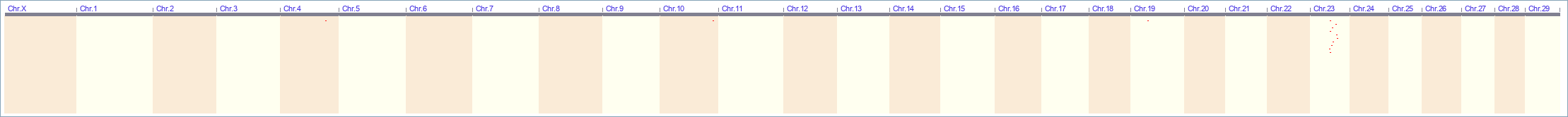 Whole genome plot of QTL/association data for trait